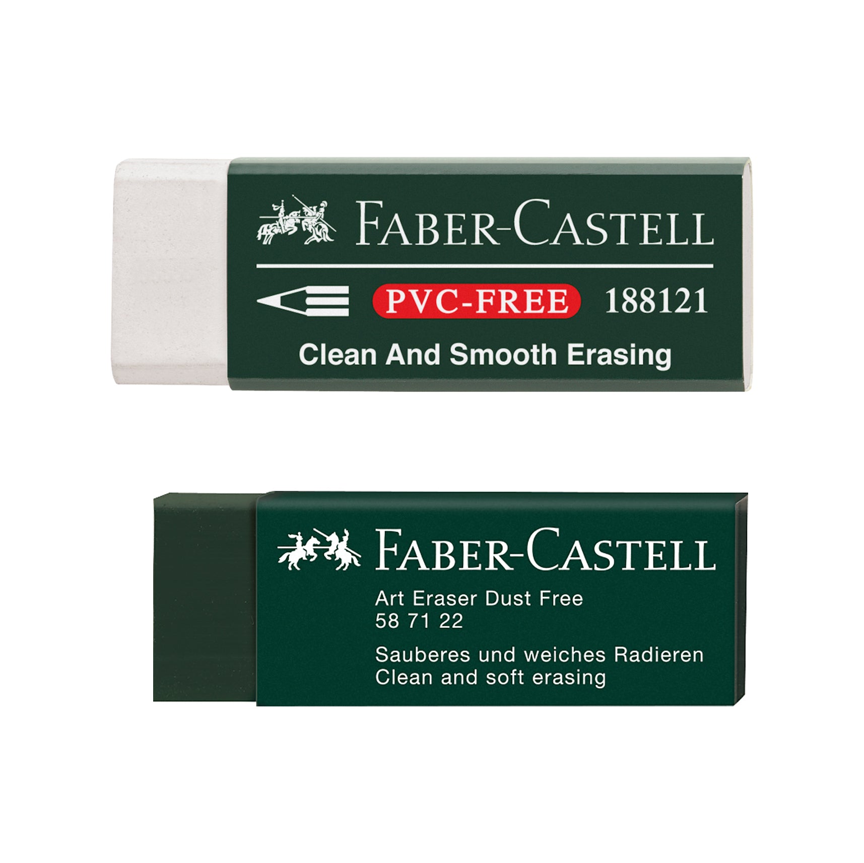 - Faber-Castell Dust-Free eraser series offer the best performance in clean erasing. It also does not contain harmful plasticizers - Phthalate. The unique "Dust-Free" formula makes the eraser soft and guarantees excellent clean and smear-free erasing. The eraser residue and dust easily roll together for easier clean up. The comfort edge (chamfered corners) are thoughtfully crafted for precise erasing and prevent breakage. Also, the erasers are latex-free and dermatologically tested & approved.