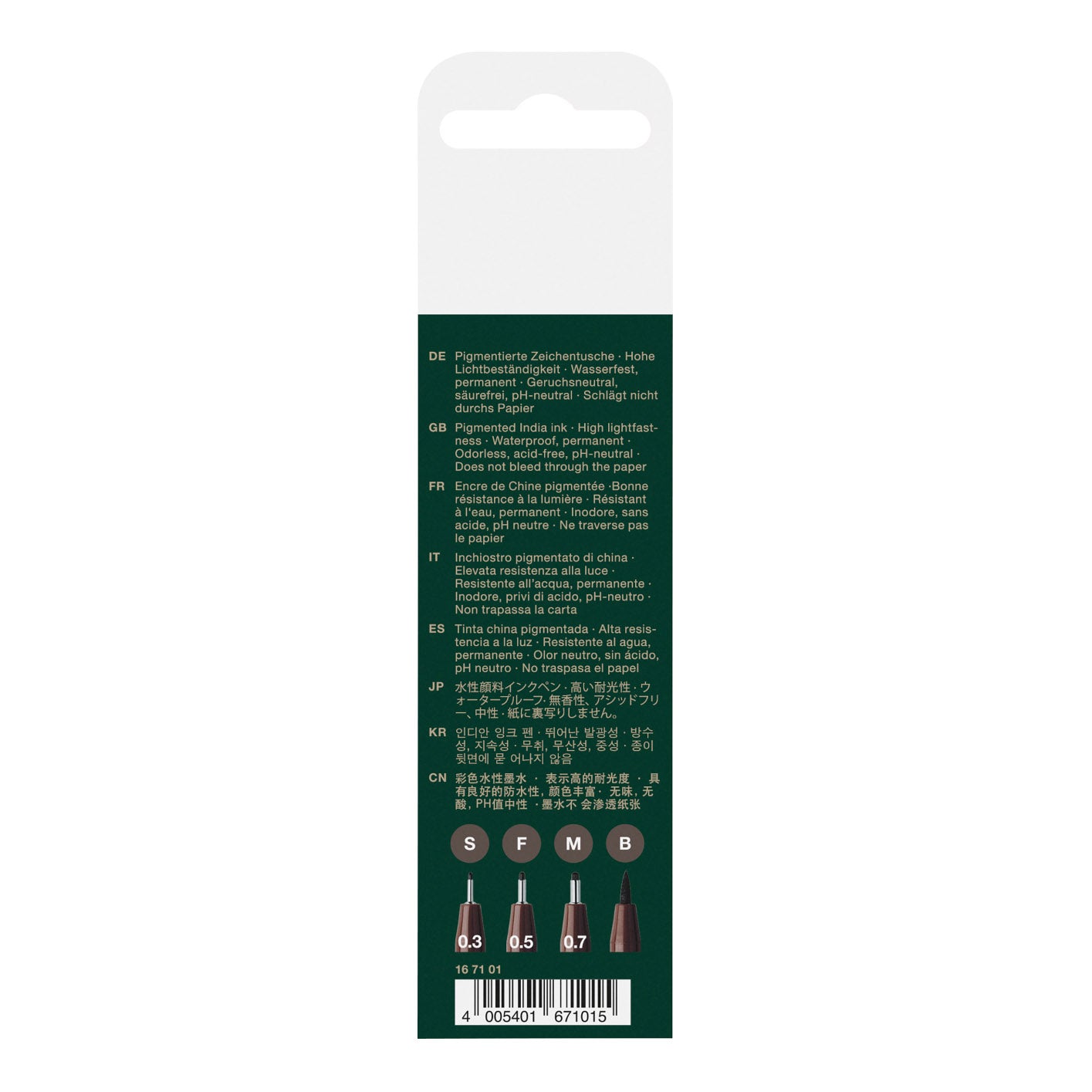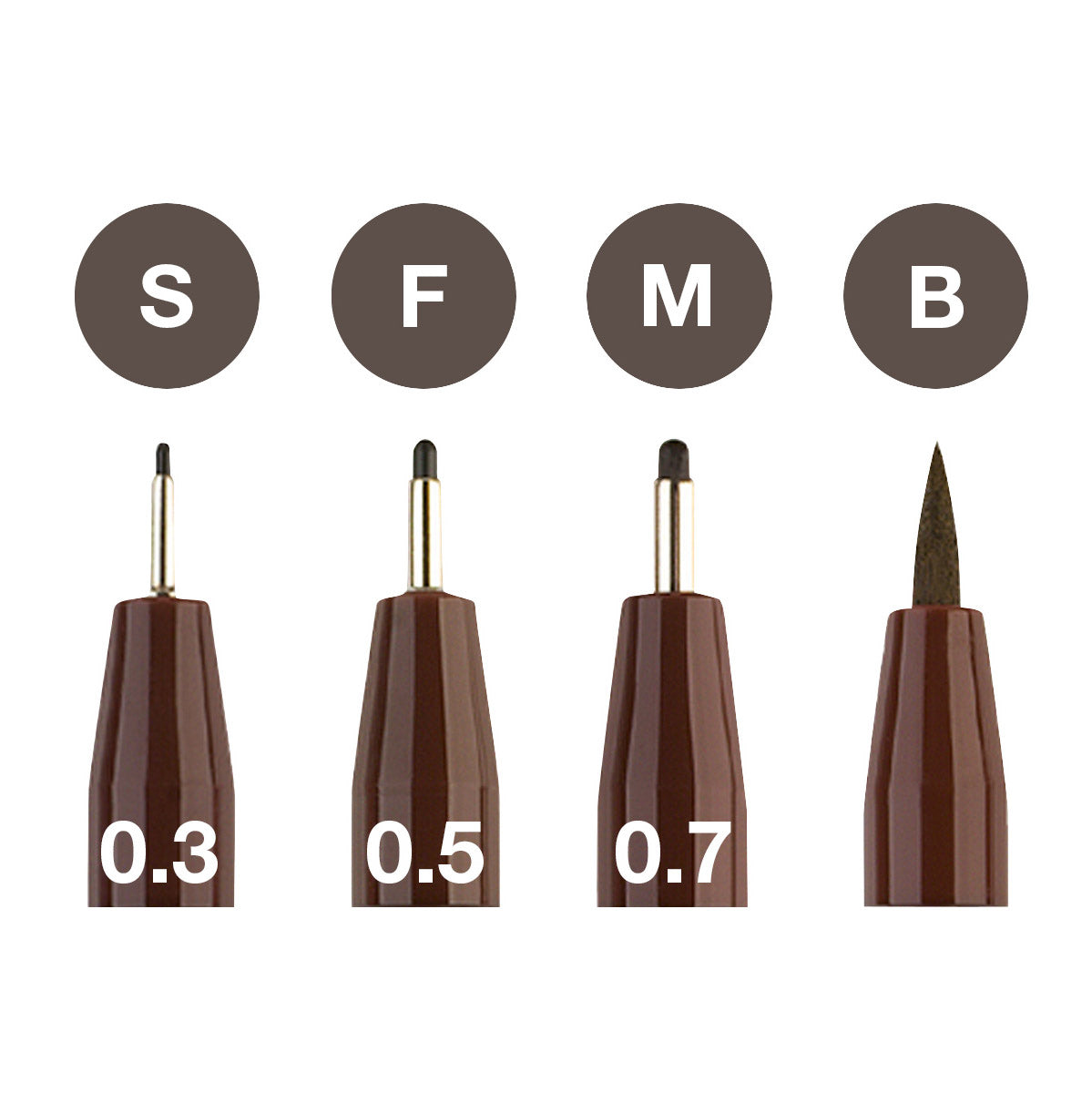- Wallet of 4: Content: S = 0.3 mm, F = 0.5 mm, M = 0.7 mm, B = brush tip